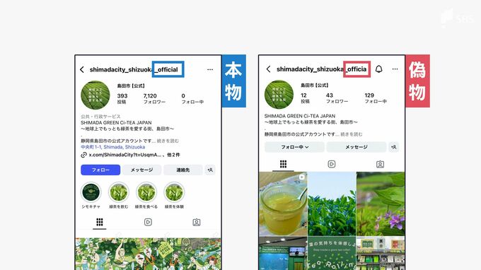 2025年7月、島田市でも偽アカウントが作られる被害がありました。