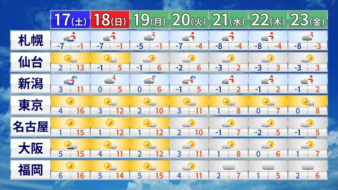 来週は再び寒波襲来 21日頃から全国的に「かなりの低温」に