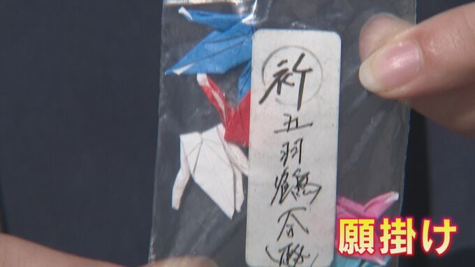 知人が作ってくれたという「折り鶴」を手に、願掛けもバッチリ!あとは、当日のコンディションです。