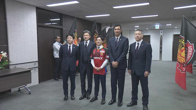 福島市の職員に拍手で迎えられたのは、福島ユナイテッドの寺田周平監督や、今シーズン加入した三浦知良選手です。