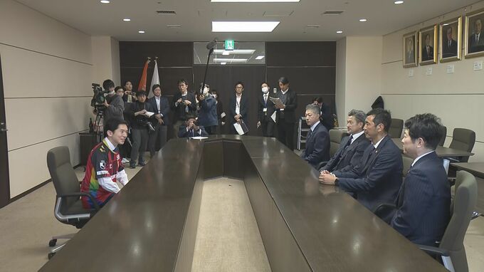 これに対し、馬場市長は「カズ選手の魂をみなさんと一緒にひとつにして、福島を盛り上げていきたい」と激励しました。