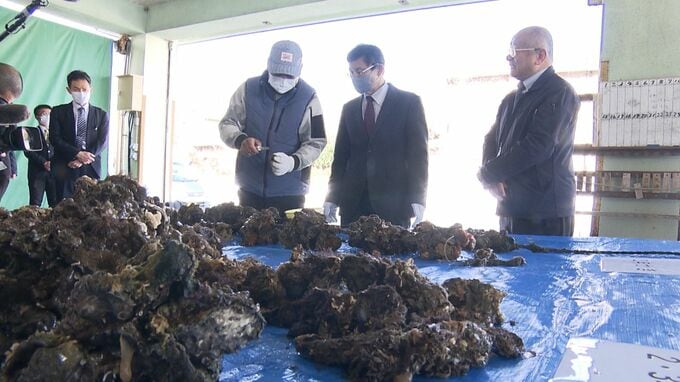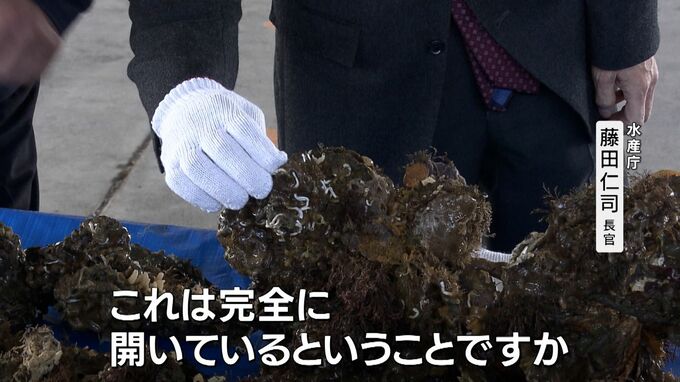 藤田長官は、きょう(16日)水揚げされたカキを直接手に取って確認し、被害の状況などについて生産者から説明を受けました。