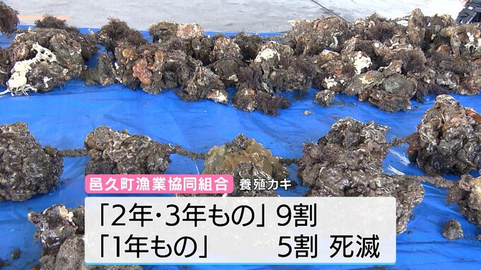 邑久町漁協では、今シーズン、「2年・3年もの」が9割、「1年もの」が5割死滅しているということです。
