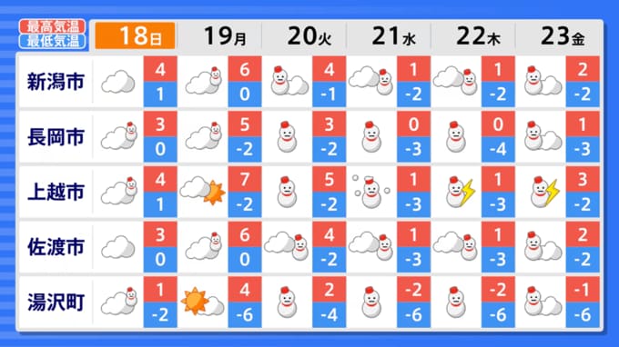 昼過ぎからは新潟県内の広い範囲で雨が降り、夜のはじめごろからは湯沢や津南などの山沿い地域で、雪が降り出す見込みです。