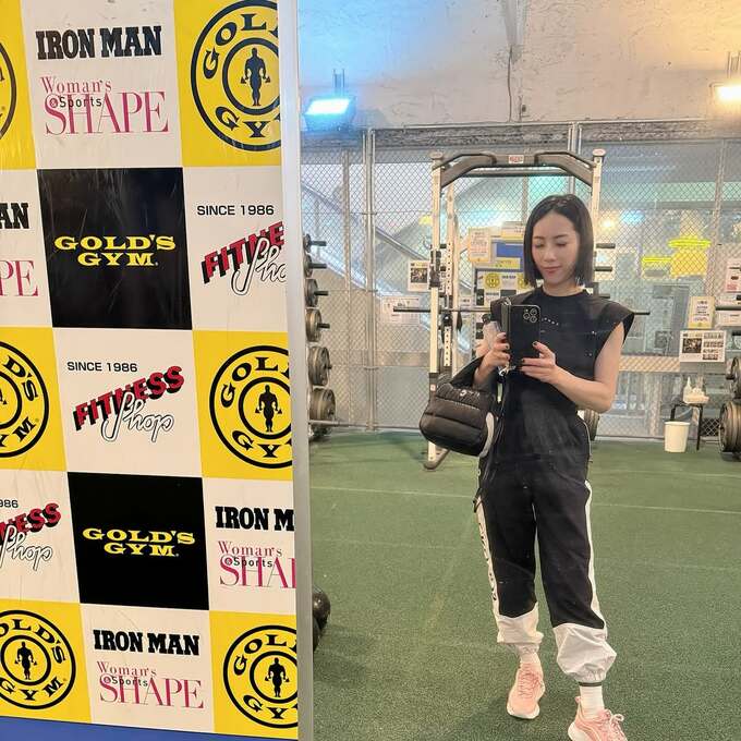 矢沢さんは、バーベルが並ぶジムで、黒いトレーニングウェアに身を包んだ写真を投稿。