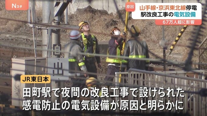 JR山手線と京浜東北線が、停電の影響で始発から運転を見合わせたトラブルについて、JR東日本は田町駅の改良工事のために設置された電気設備が原因だったと明らかにしました。JR山手線と京浜東北線は新橋駅から品川…
