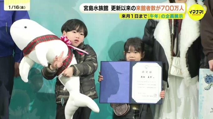 宮島水族館が2011年に大幅リニューアルして以来の来館者数が700万人を達成し、記念のイベントが開催されました。