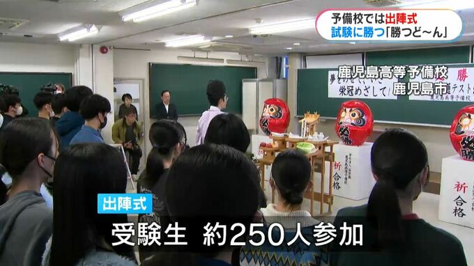 鹿児島市の鹿児島高等予備校です。出陣式に受験生およそ250人が参加しました。