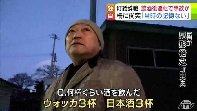 「ウォッカ3杯。日本酒3杯…」辞職の五戸町議 飲酒後に事故か