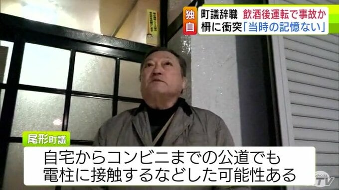 また、尾形議員によりますと、自宅からコンビニまでの公道でも電柱に接触するなどの物損事故を起こしていた可能性があるとしています。