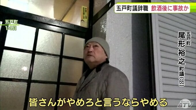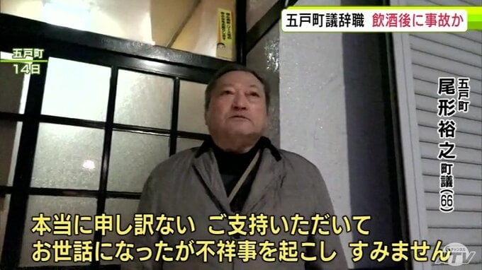 事故から3日後の14日に飲食店に入る尾形議員を取材したところ、謝罪の言葉を口にしていました。