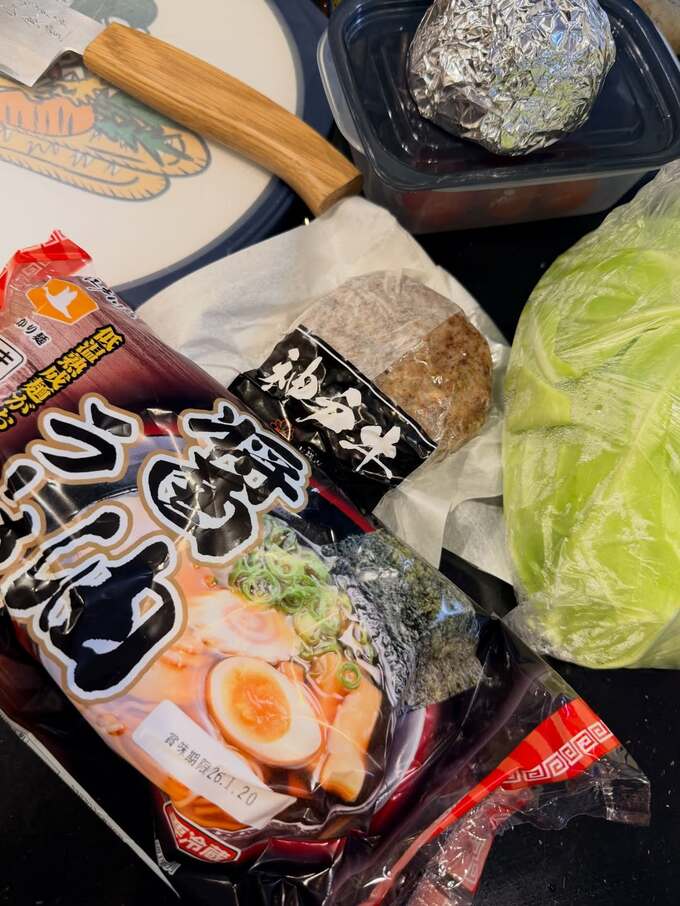 西山さんは「冷蔵庫に醤油ラーメン」「冷凍庫に冷凍神戸牛ハンバーグ1個」「野菜室にキャベツと玉ねぎ半玉ずつ」と、冷蔵庫の中身を紹介。