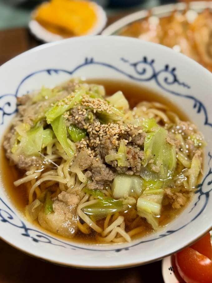 醤油ラーメンを作り、分解したハンバーグは野菜と共に「炒めた具材をたっぷり乗せたら完成」として「#肉野菜あんかけラーメン」の写真を投稿しています。