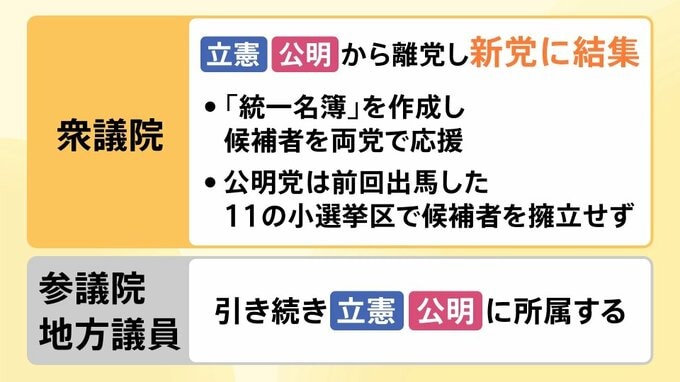 選挙では、▼「統一名簿」を作成し候補者を両党で応援することや、▼公明党は前回出馬した11の小選挙区で候補者を擁立しないことなどが明らかになっています。