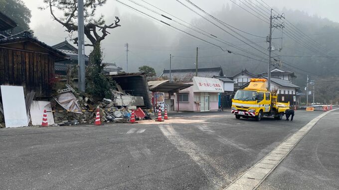 警察によりますと、井原市下稲木町のトラック運転手の男性(62)が運転する大型トラックが、交差点付近にある標識柱に衝突し、運転席付近が大破していたということです。