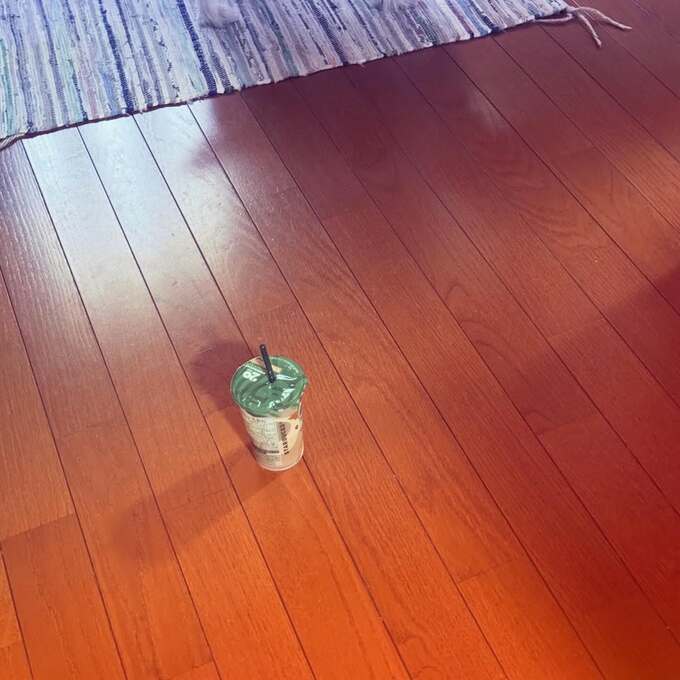 今月5日の投稿では、フローリングの床にポツンと置かれた飲み物の写真。「こんなとこにいるはずも無いヤツがこんなとこにいる」と、見つけた瞬間の驚きをテキストしています。真木さんにとって、自分ではこんなところに飲み物を置いた覚えが全くないことがうかがえます。
