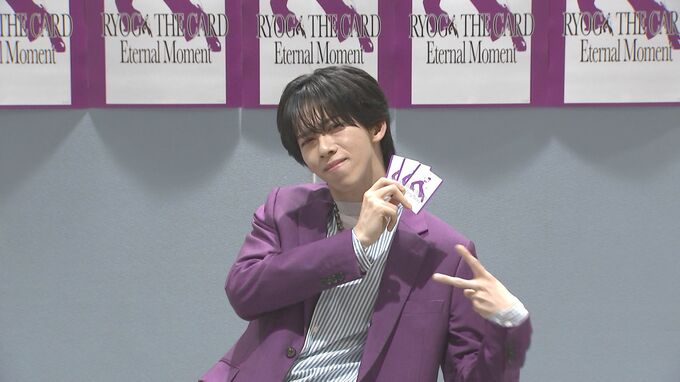 リョウガさんは〝300種をランダムで発売するということで、自分の狙っているカードが出るかっていう運試し要素がある。カッコいい姿、可愛い姿、時にはエモかったり、ほぼ全てのジャンルを踏襲するような写真〟とアピールしました。