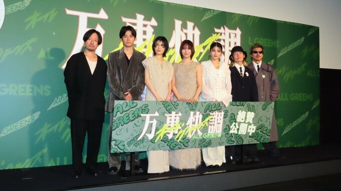 俳優の南沙良、出口夏希、吉田美月喜、黒崎煌代さん、クリエイティブミクスチャーユニットNIKO NIKO TAN TAN(OCHAN 、Anabebe )、児山隆監督 が、映画『万事快調<オール・グリーンズ>』の公開記念舞台挨拶に登場しました。