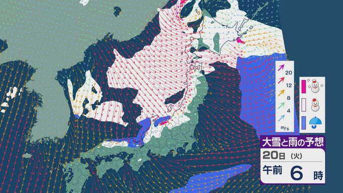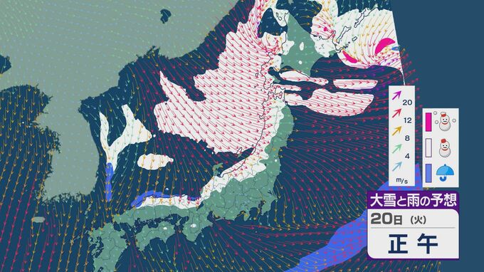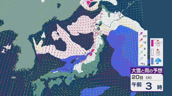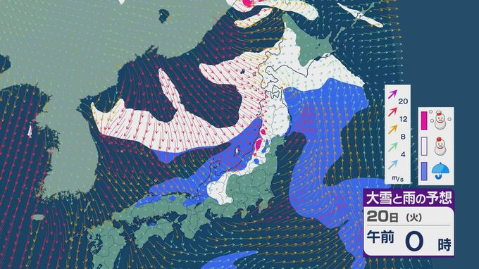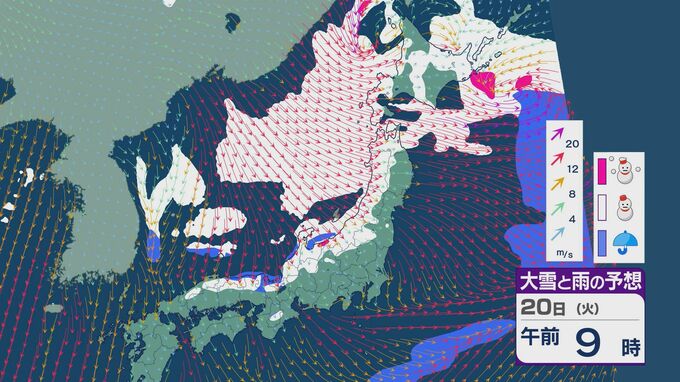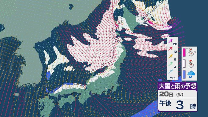 【大雪情報】週明け20日(火)を境に“強烈寒波”が到来 冬型気圧配置が持続し日本海側では大雪が続くおそれ 雪・雨と風シミュレーション 北陸放送 2026年1月17日(土) 18:53 国内 週明けの雪・雨と風の予想ですが、20日は東北の日本海側などで雪の降り方が強まりそうです。日中からは、北陸や山陰でも雪が降り出すでしょう。