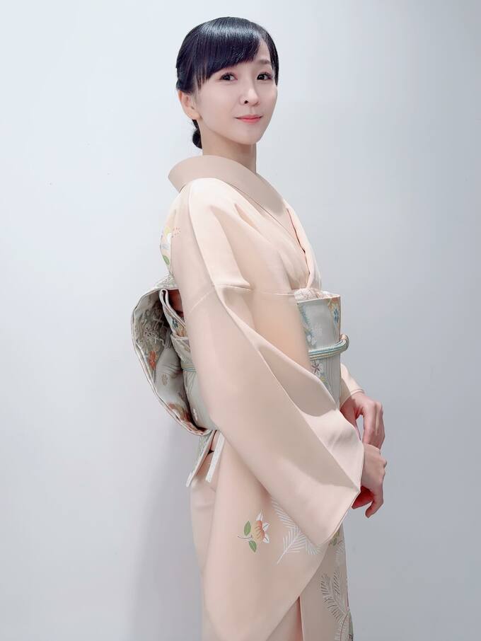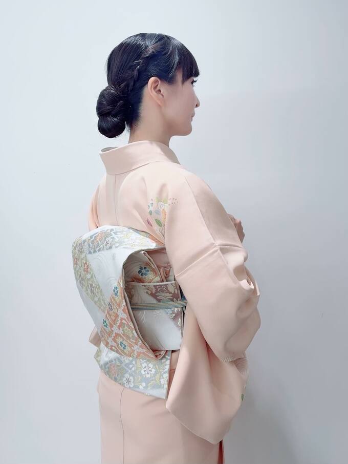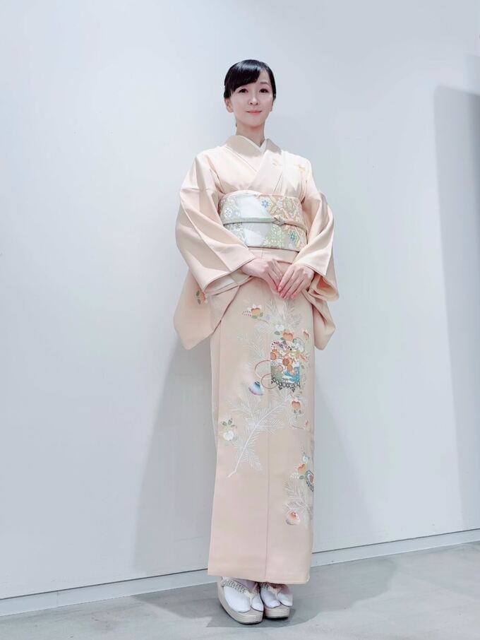 かしゆかさんは、淡いピンク色の生地に花が描かれた着物を着用。着物は数年前に買ったものだということです。