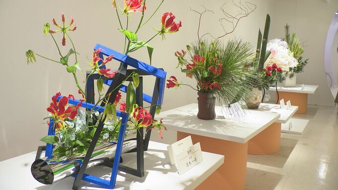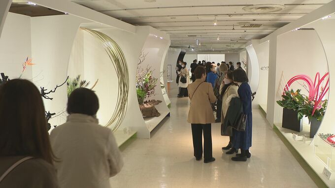 金沢エムザで17日から始まった、第51回北國花展「伝統と現代」。今回は13の流派から選ばれた華道家157人の作品が展示されています。