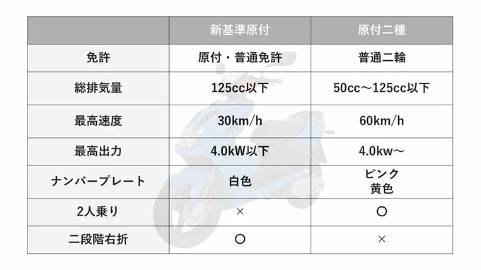 車体が大きくなり、125ccクラス並みに走行安定性が向上する新基準原付だが、適用される交通ルールは従来の50cc原付と一切変わらない。最高速度は時速30キロ以下。二人乗りはできない。交差点を右折する際には「二段階右折」が求められる。