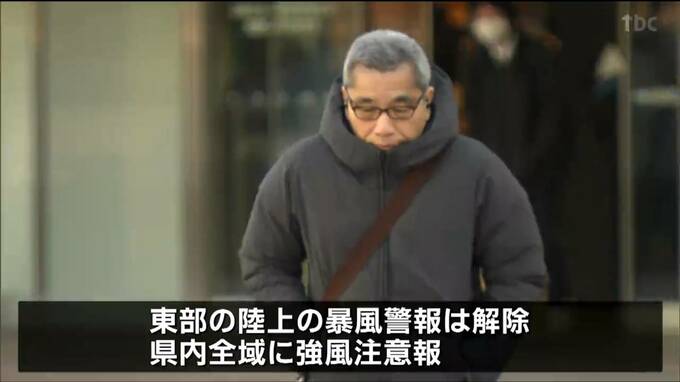 東部の陸上に出ていた暴風警報は解除されたものの県内全域に強風注意報が出ています。引き続き夕方まで西寄りの強風に注意してください。