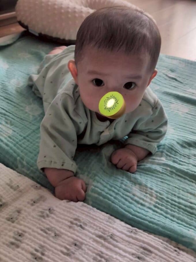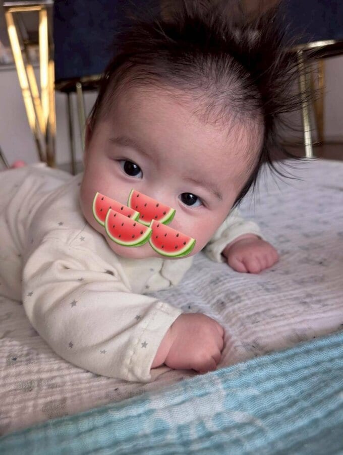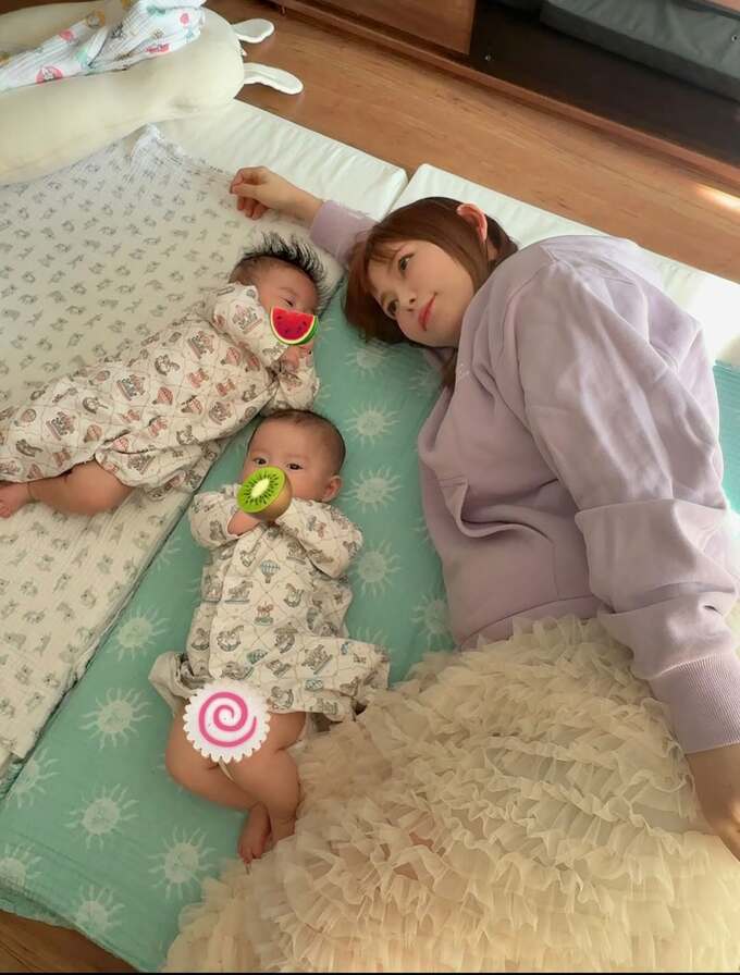 双子の赤ちゃんについては「コロンコロンするから目が離せません!すぐほぼ寝返りになっちゃう弟くんとニコニコキャッキャわらうお兄ちゃん」と紹介し、それぞれの特徴を明かしています。