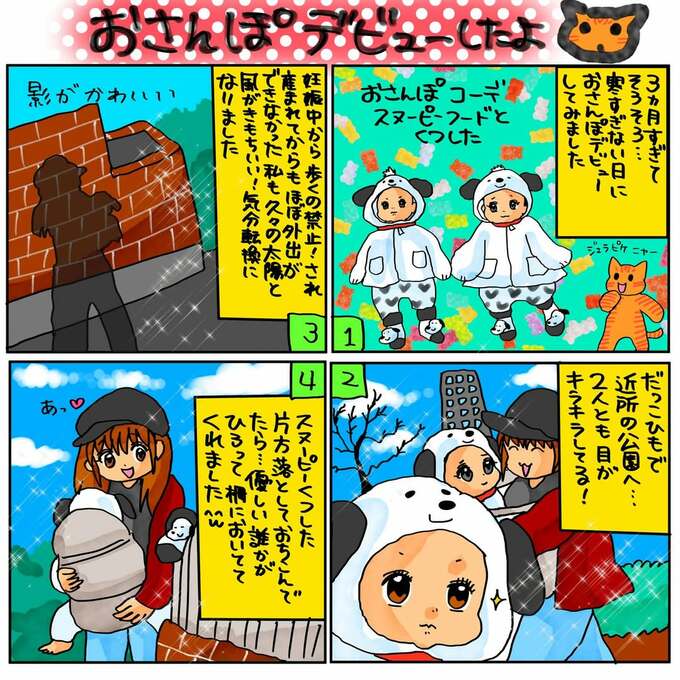 歌手・タレントの中川翔子さんがインスタグラムを更新。双子の赤ちゃんとのお散歩デビューを報告しました。冬の昼下がり、愛らしいスヌーピーのコスチュームに身を包んだ赤ちゃんと、初めて外の空気を楽しむ様子を写真や絵日記で公開しています。