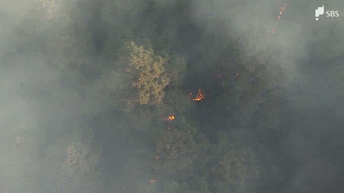 1月17日に静岡県藤枝市で山林火災が発生し、18日午前11時半現在も消防などによる消火活動が続いています。18日午前8時頃に上空から撮影した映像です。