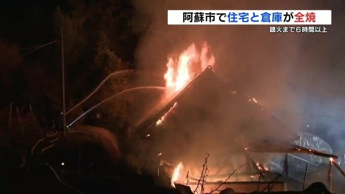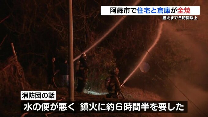17日夜、熊本阿蘇市で火事があり住宅と倉庫が焼けました。水の便が悪く、鎮火までに6時間以上を要したということです。