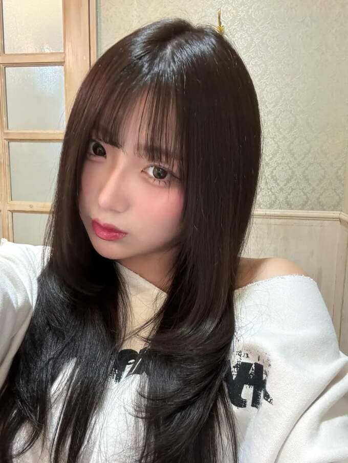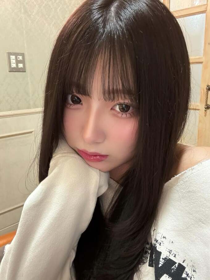 1枚目の写真では、希空さんが頬に手を当て、ややうつむき加減にカメラを見つめています。艶やかな黒髪と白いトップスのコントラストが印象的で、淡い切なさを感じさせる表情が彼女の自然な魅力を引き立てています。
