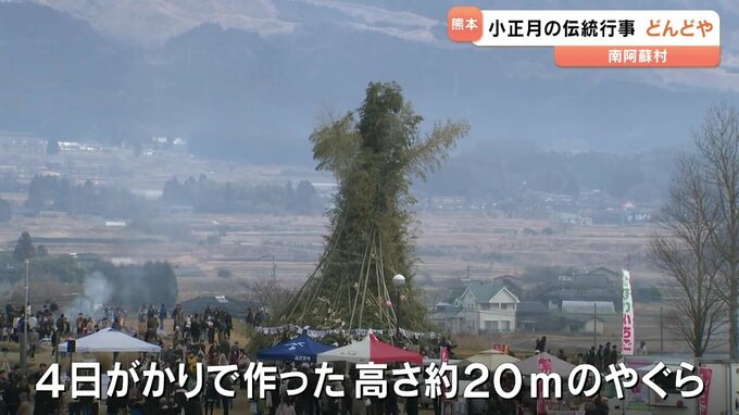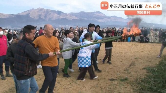 1年の無病息災などを願う伝統行事の「どんどや」が南阿蘇村で行われ、訪れた観光客などがその様子を楽しみました。