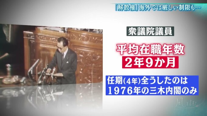 戦後、衆院議員の平均在職年数は2年9か月。実は、4年の任期を全うしたのは、1970年代のわずか1度しかありません。