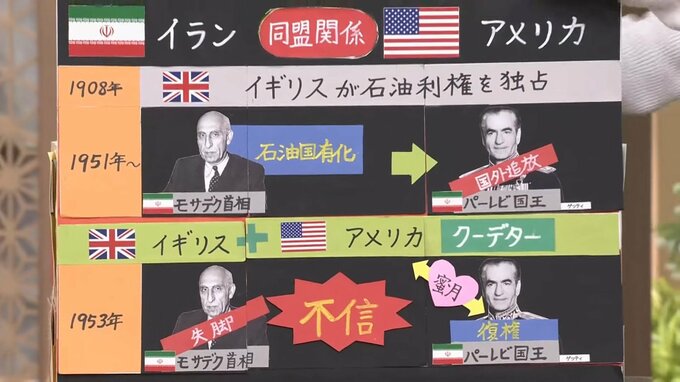 実はかつて、イランとアメリカは「同盟関係」にありました。遡ること1900年代、イランの石油利権は、イギリスが独占していました。この状況を打破しようと、1951年、当時のモサデク首相は「石油国有化」を断行。その後「パーレビ国王」は国外追放に追い込まれました。しかし利権を守りたいイギリスに加え、アメリカも混乱に乗じて介入。