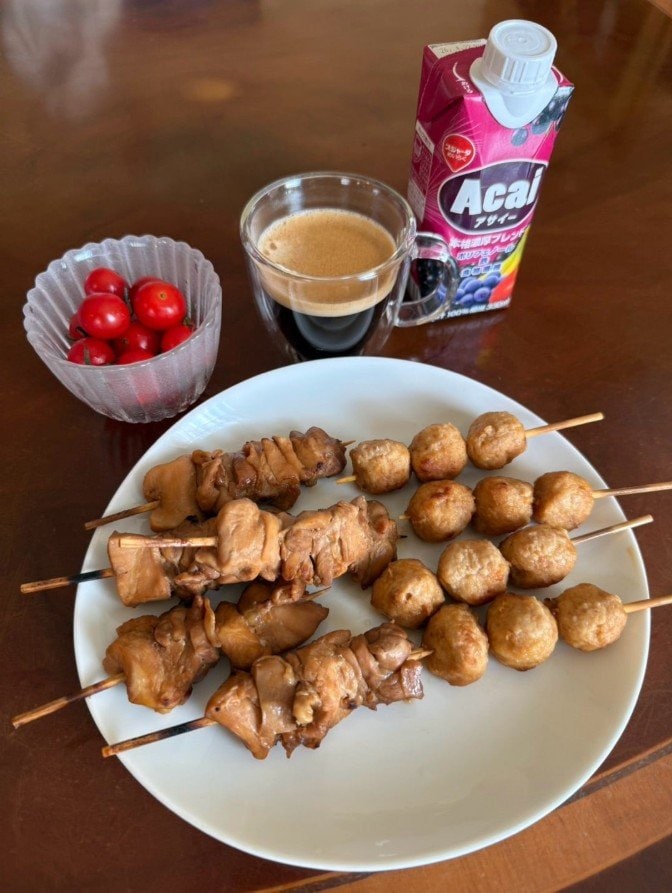 花田さんは「車を綺麗にしたり、駐車場掃除したり、布団をあげたりしたら疲れた」と朝からの家事を報告。その後の朝食として「国技館焼き鳥、ミニトマト、コーヒー、アサイスムージー」を並べたテーブルの写真を公開しました。