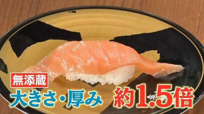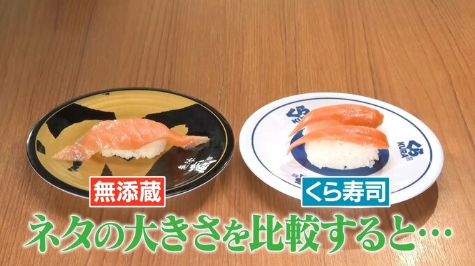 どれほど大きさに違いがあるのか。くら寿司のネタと比較すると、大きさと厚みに約1.5倍の差がありました。