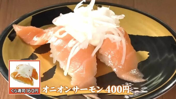例えば、同じ「オニオンサーモン」でも2貫400円(くら寿司160円)、「はまち」も2貫400円(くら寿司160円)と、通常のくら寿司と比べてお値段が少々お高めですが…