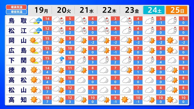 中国地方 1月21日頃から かなりの低温