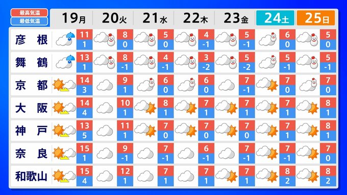 近畿地方 1月21日頃から かなりの低温