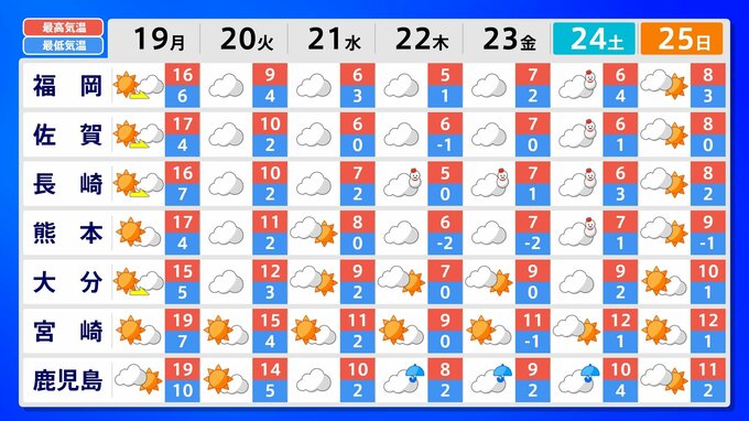 九州南部・奄美地方 1月21日頃から かなりの低温