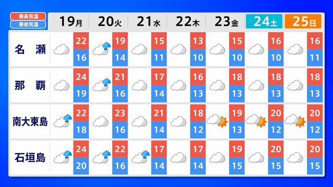 沖縄地方 1月21日頃から かなりの低温