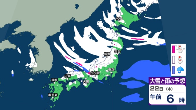 【大雪情報】20日(火)爆弾低気圧並に急発達 21日から寒波本番"平地で雪の目安"-6℃以下が列島すっぽり覆う予想 25日(日)まで長期化へ 雨雪シミュレーション|TBS NEWS DIG