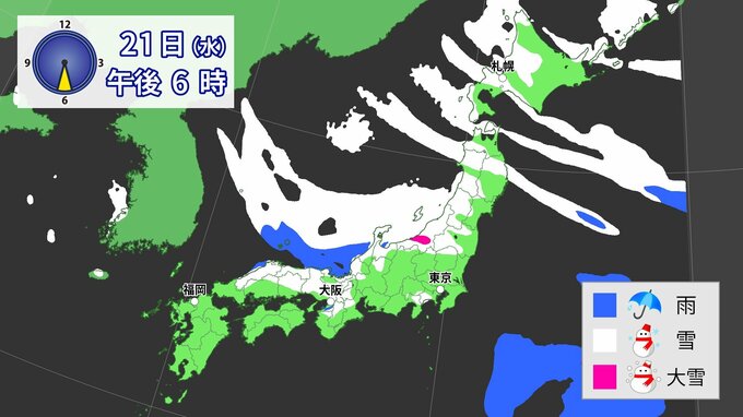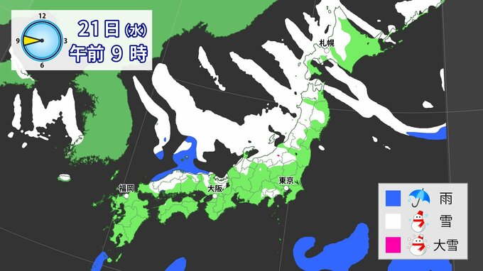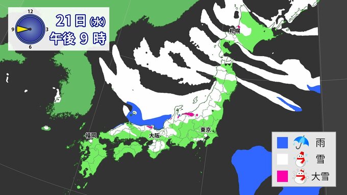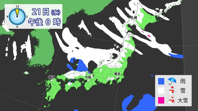 【雪の予想】東~西日本では20~21日は強風・風雪などの注意・警戒  北~西日本では21日大雪による交通障害に注意・警戒を【気象庁 19日(月)~24日(土)の雪雨シミュレーション/19日現在】|TBS NEWS DIG