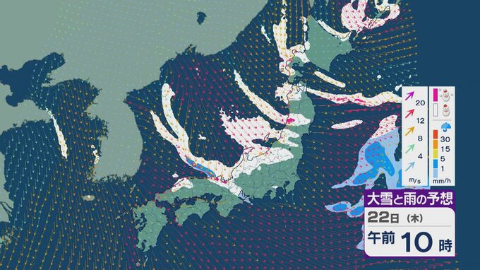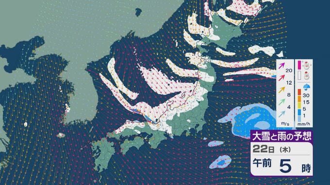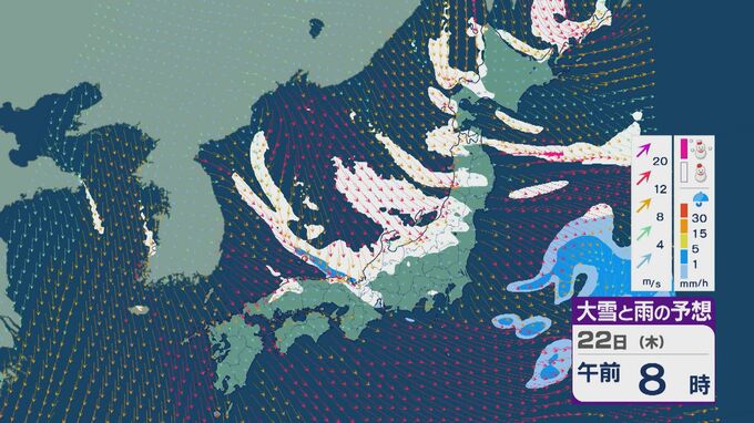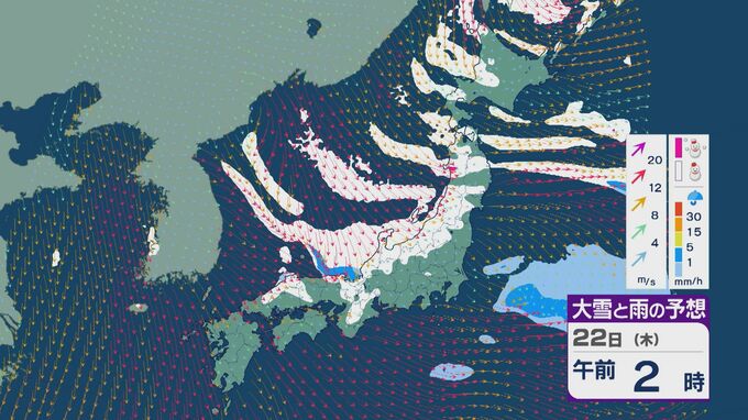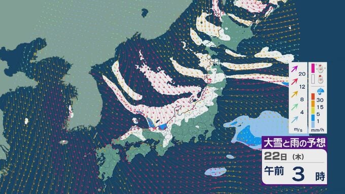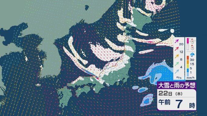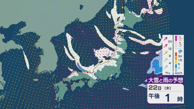 【大雪情報】大寒の20日(火)から“冬型気圧配置”と“強烈寒波”が続く見込み 北陸など日本海側では大雪が週末にかけて続くおそれ 交通障害などに注意・警戒を 雪・雨と風シミュレーション 北陸放送 2026年1月19日(月) 09:35 国内 22日は、日本海で風が収束することで雪雲が発生するJPCZ(日本海寒帯気団収束帯)の影響を受けそうです。近畿北部やその周辺で発達した雪雲が流れ込み、雪の降り方がかなり強まるおそれがあります。