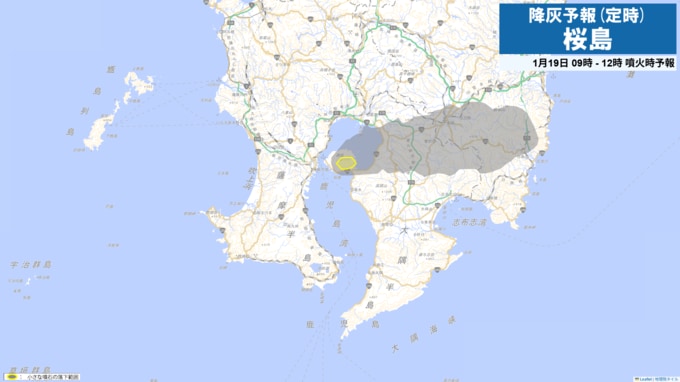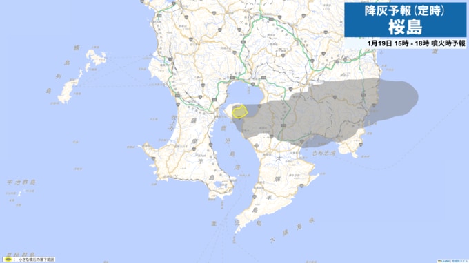 桜島降灰予報(定時)灰が予想されるエリアと時間帯を確認