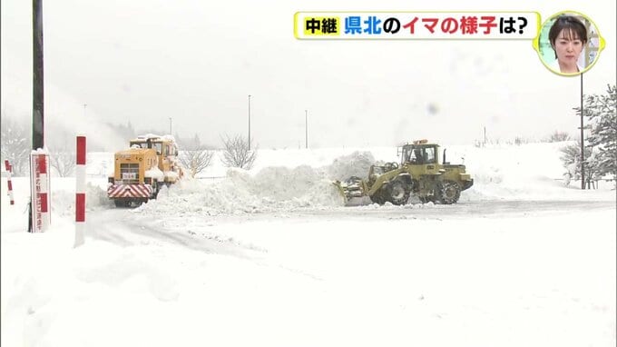 こちらに着いたときが午後2時半ごろだったのですが、そのころにはもう除雪作業が始まっていました。道の駅の方にお話をうかがいますと、きょうは午前9時からオープンの予定だったのですが、朝5時から作業をされて、2~3時間ほど除雪作業が行われたということです。