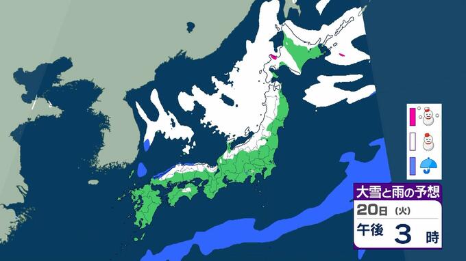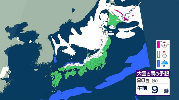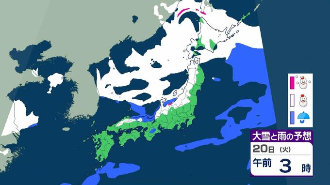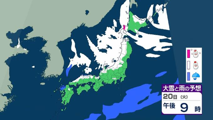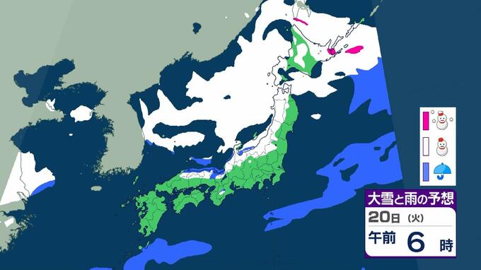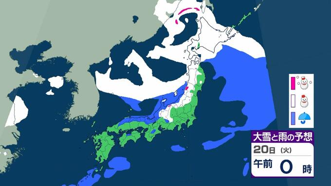 【大雪情報】警報級の大雪21日~25日の可能性 近畿50センチ北陸100センチ東北70センチの予想 日本海にJPCZが停滞した場合は…局地的に強まるおそれも 毎日放送 2026年1月19日(月) 11:13 国内 20日(火)