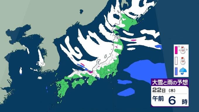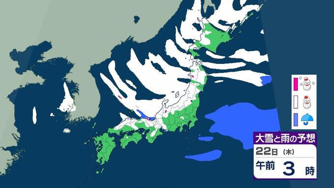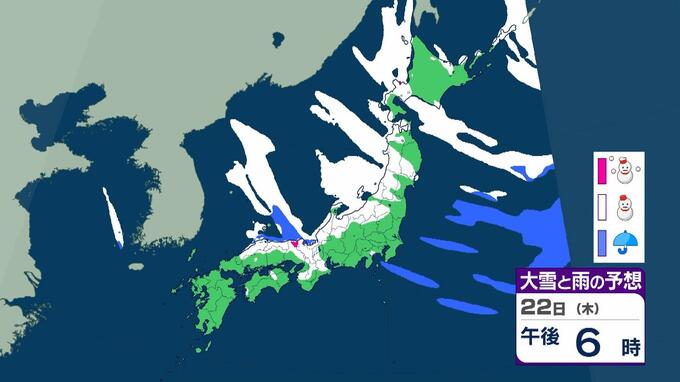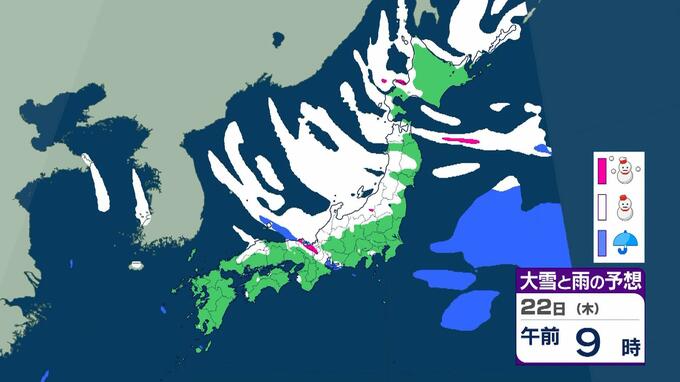 【大雪情報】警報級の大雪21日~25日の可能性 近畿50センチ北陸100センチ東北70センチの予想 日本海にJPCZが停滞した場合は…局地的に強まるおそれも 毎日放送 2026年1月19日(月) 11:13 国内 22日(木)