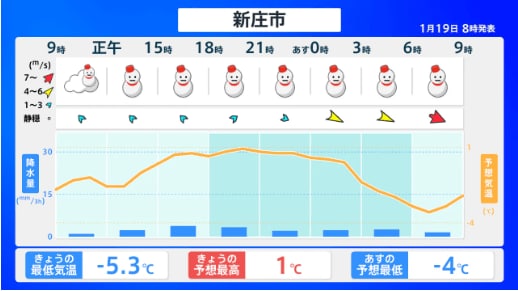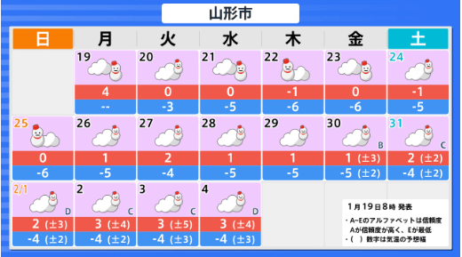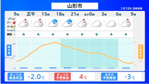 【山形天気】庄内では雪を伴った西よりの強い風が吹きしける予報 20日は風雪や高波に注意・警戒 山形・全国の天気を画像で 気象庁 テレビユー山形 2026年1月19日(月) 11:21 国内 ■山形・全国の天気 画像はTBS NEWS DIG Powered by JNNより 画像は気象庁より https://newsdig.tbs.co.jp/articles/-/2408766?display=1